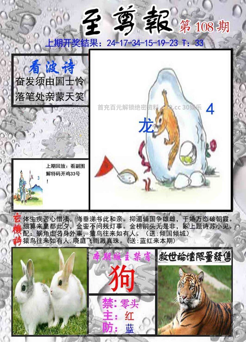 港彩至尊报第106期 玄机诗:剑河风急雪片阔,秋花开到雁来红 解:风解出风肖虎兔龙,红解出红波的特码 综合解肖:虎猪龙猴马牛 综合双波:绿波+蓝波